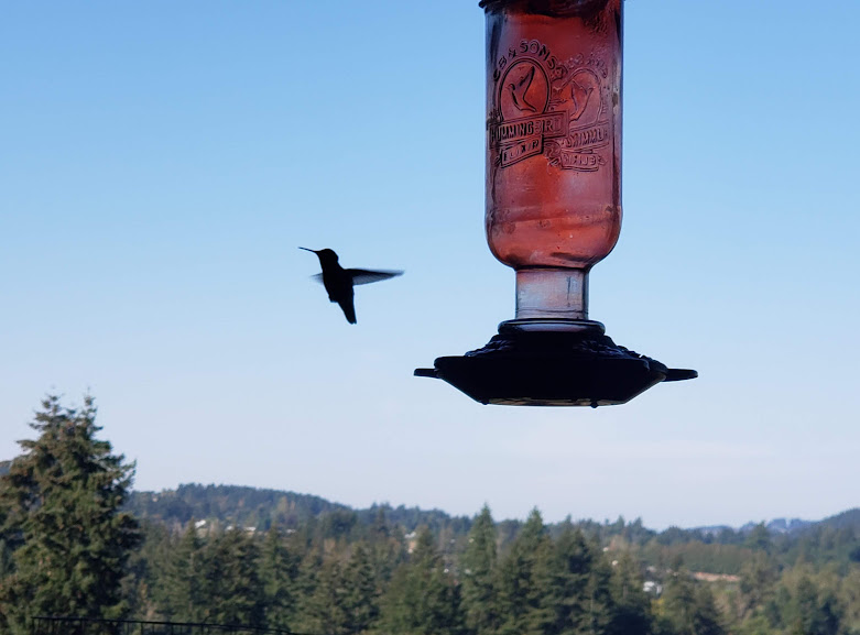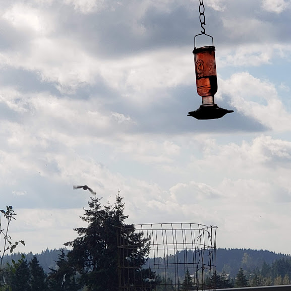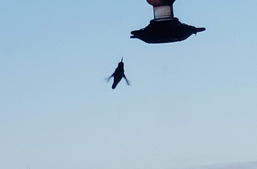 Daily hummingbird heading to the feeder.