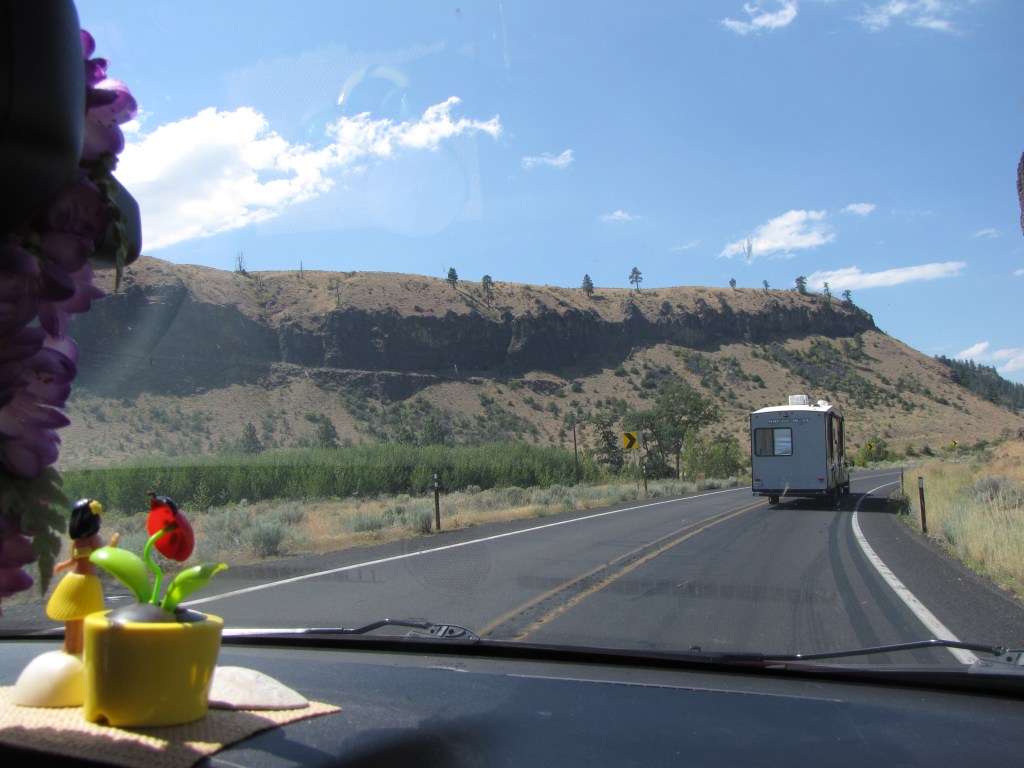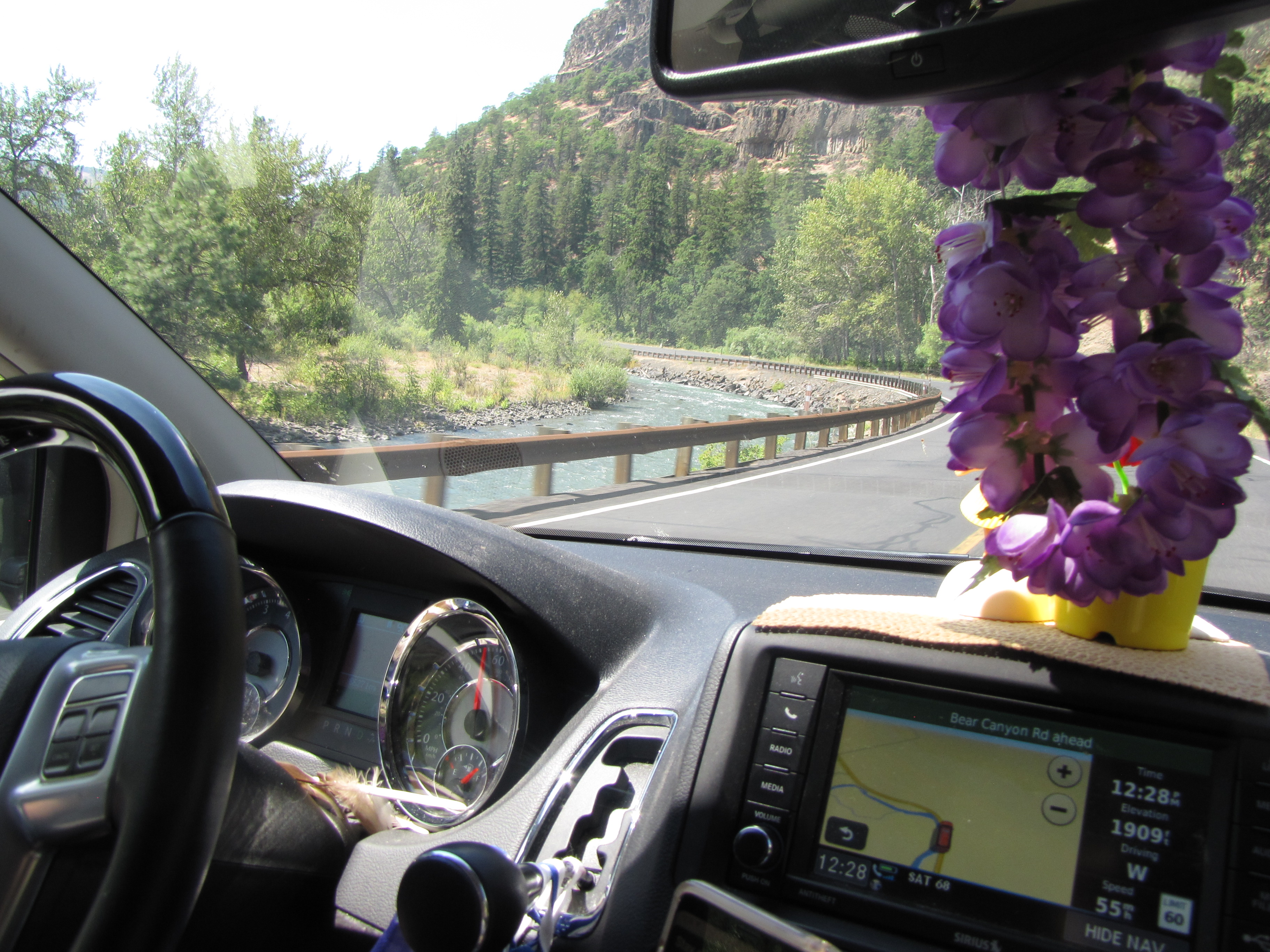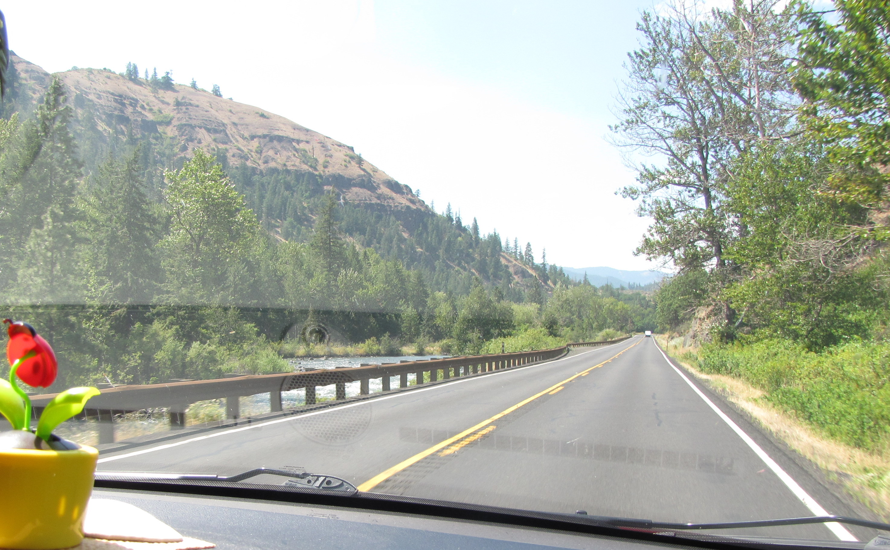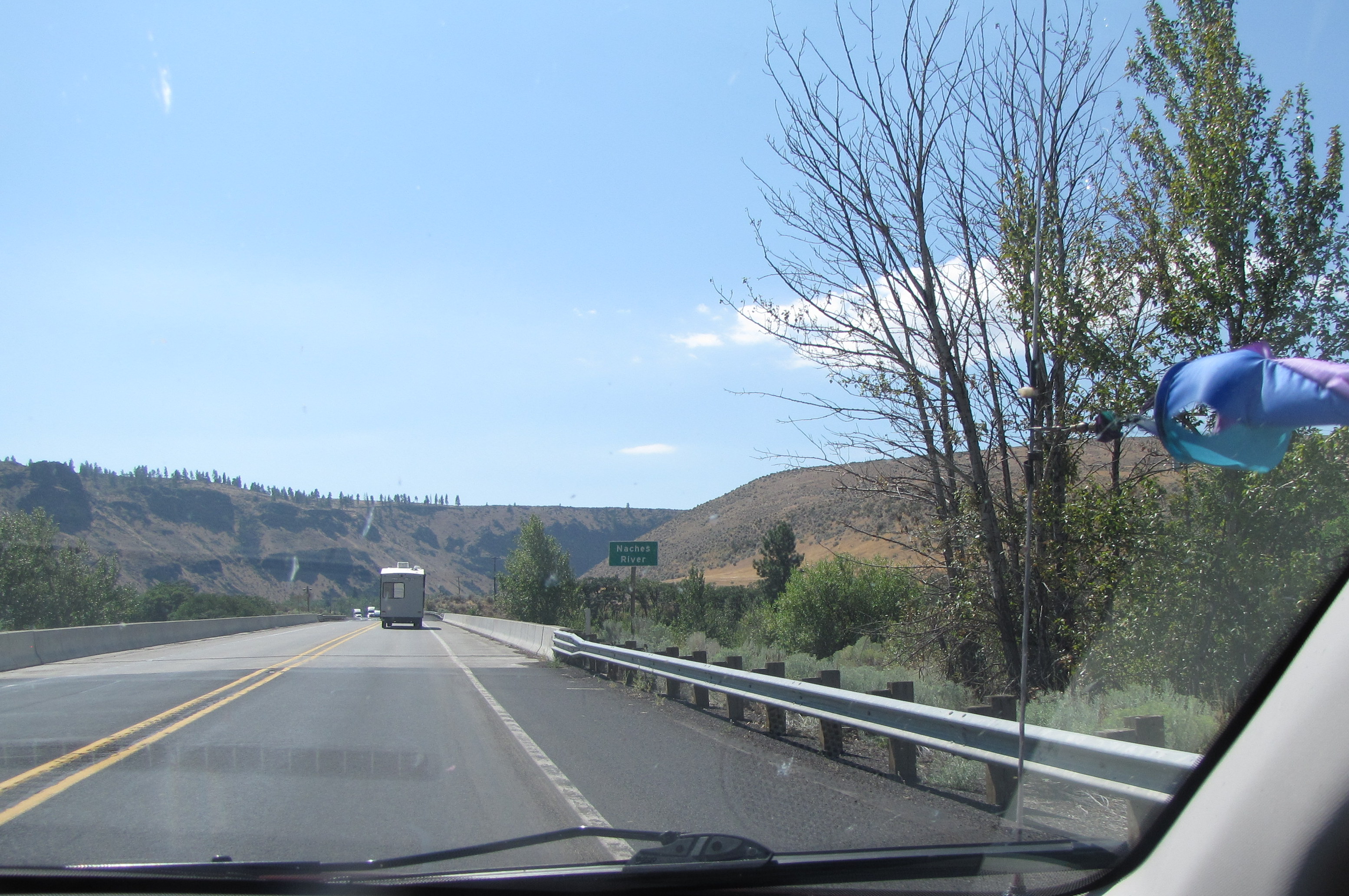 We hadn’t had lunch yet, and though I’d brought along some kettle corn and Nolemana had his apple juice, when he checked his blood sugar it was getting pretty low, so I turned around and we headed back to the grocery store. But they didn’t have any hot food, so we headed back onto the road. I felt really bad that we hadn’t eaten before, like in Naches, but Nolemana said he’d be okay till the next town. Lesson learned.
