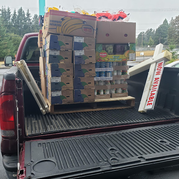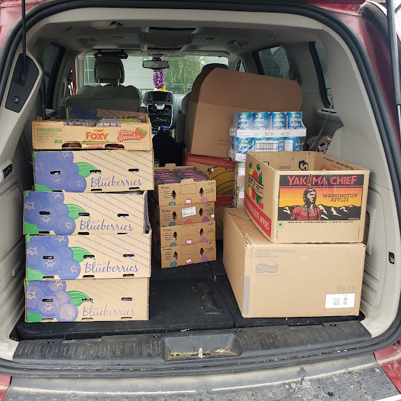 Delivery day story: My last stop is the garden center that collects food for the food banks around here. When I got there today, they were thrilled, because the place in Sandy was having people come in for food, but they had none to give away. I was so happy to be able to provide some for the families.