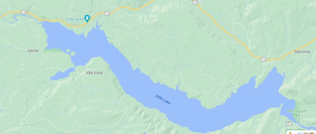 This is how big Riffe Lake is; you can see the view area, too, on da map.