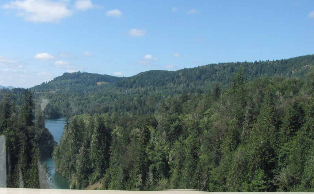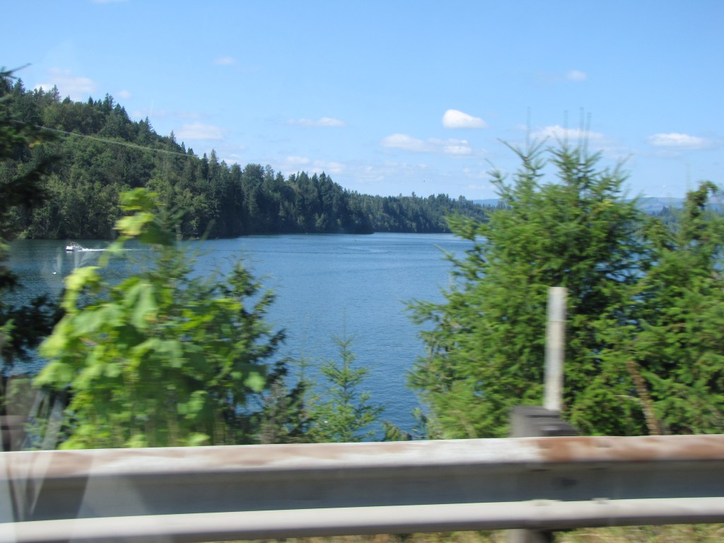 As we drove along Highway 12, I had absolutely no idea that we’d be passing by Mayfield Lake, and when I suddenly spotted the sign saying that it was on our right, I got big time chicken skin. It was Carol’s lake!!! She’d told me about it so many times, telling me of her joy being there, and now, there it was! I got very teary, seeing “her” lake, missing her, wishing she could be there with us. I touched my wrist, and was oh, so happy, that I’d thought to wear my special memory of her on this trip.