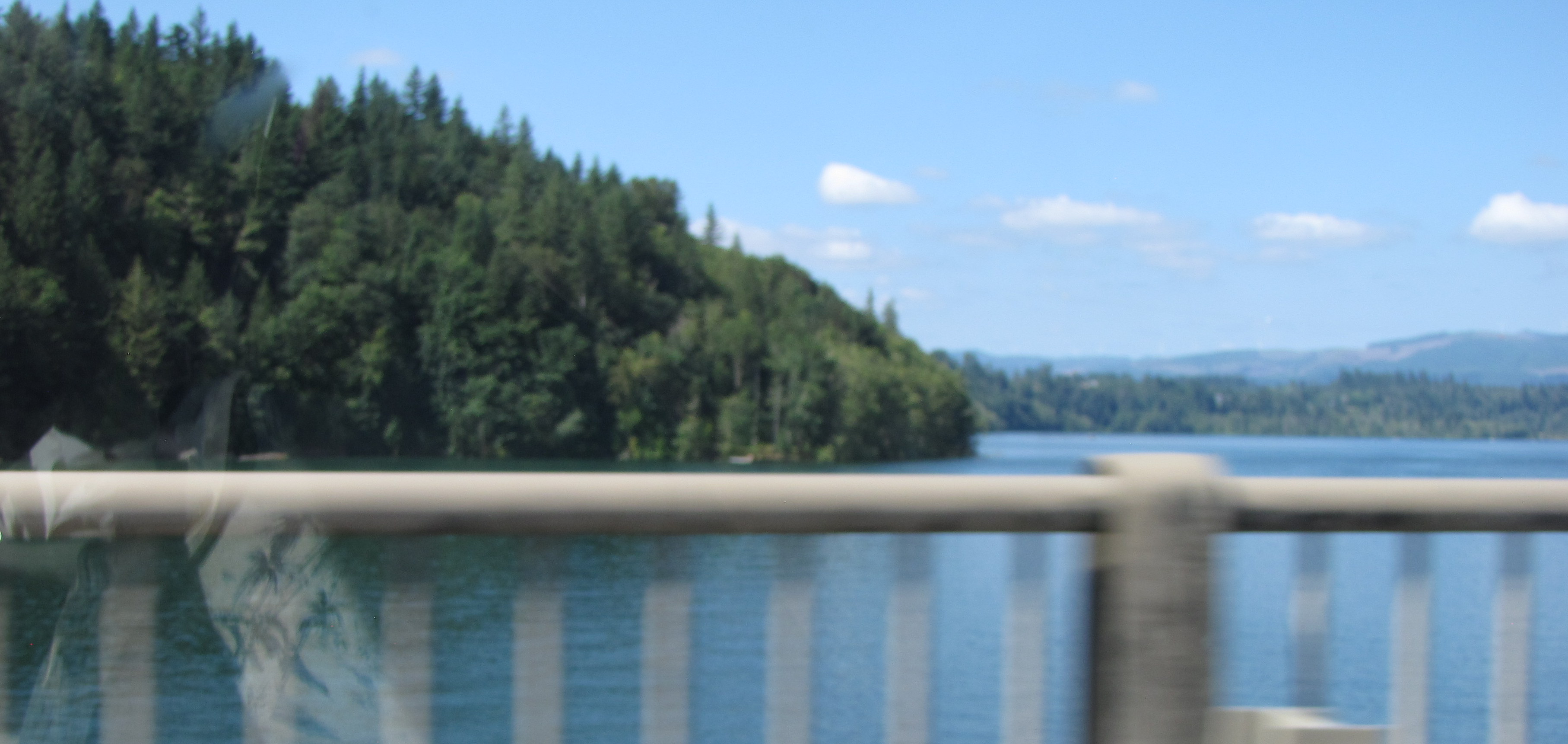As we drove along Highway 12, I had absolutely no idea that we’d be passing by Mayfield Lake, and when I suddenly spotted the sign saying that it was on our right, I got big time chicken skin. It was Carol’s lake!!! She’d told me about it so many times, telling me of her joy being there, and now, there it was! I got very teary, seeing “her” lake, missing her, wishing she could be there with us. I touched my wrist, and was oh, so happy, that I’d thought to wear my special memory of her on this trip.