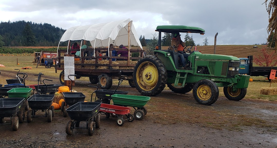 The farm wagon taking visitors out to the pumpkin patch at Olson Farms.