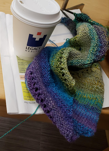 Knitting in the waiting room.