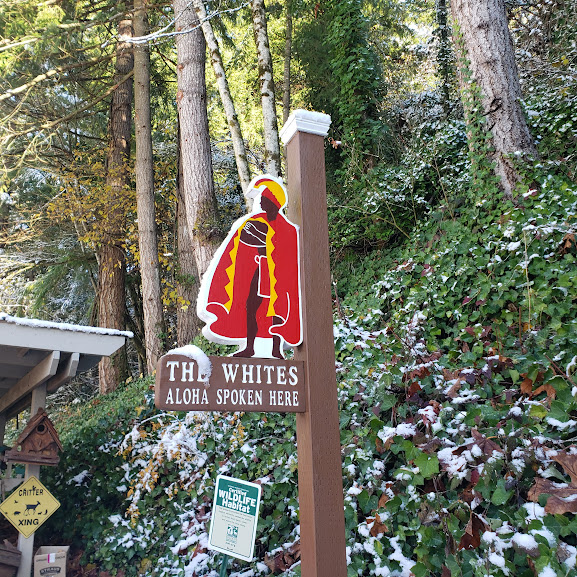 King Kamehameha with snow on him.