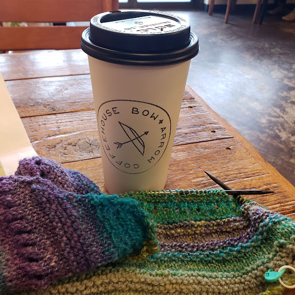 I had to pick up a prescription for Nolemana, and spent my time here, knitting, while I waited for it to be ready.