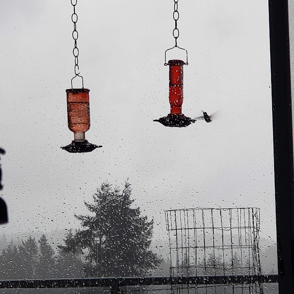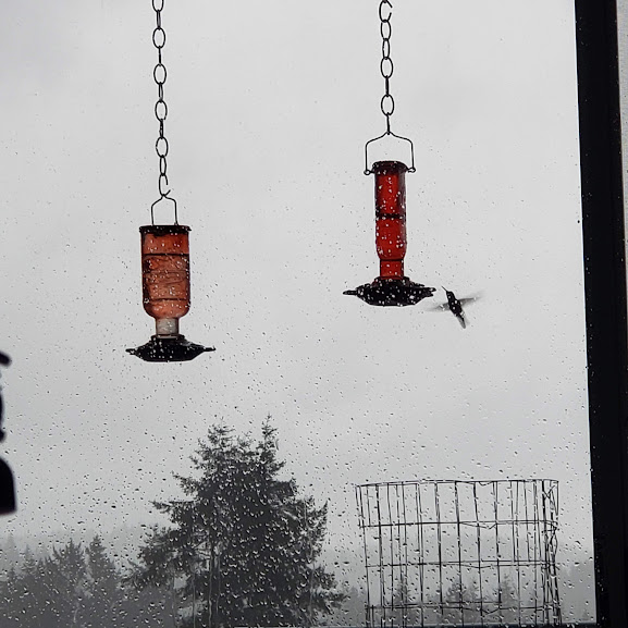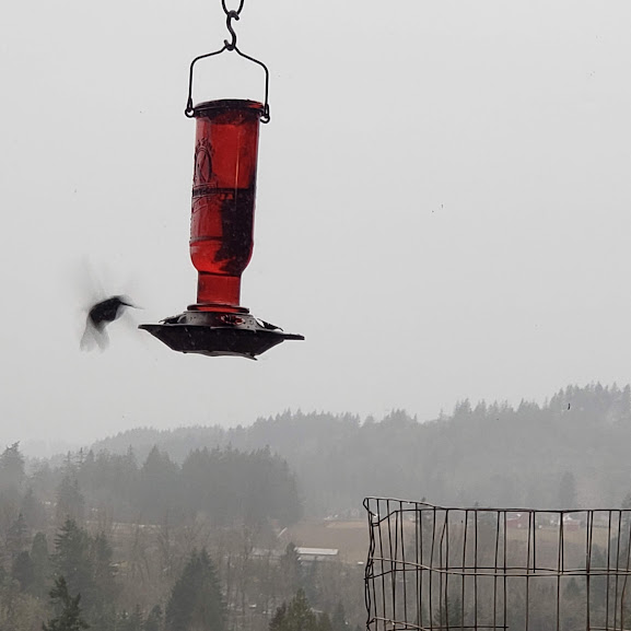 I feel for the hummer sitting in the pouring rain thinking he had to protect his food sources. January in the PNW. Sometimes I wish I could hibernate for a couple of months and wake up when it’s warmer.