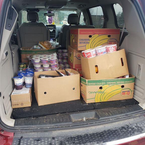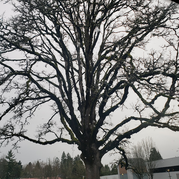 Daily hummingbird.Food deliveries. We had tons of yogurt today.We stopped to say aloha to this handsome Bernese Mountain Dog, Bernie, and his owner after leaving one of our deliveries. Bernie reminds me of my beloved Australian Shepherd, Kukui. I sure do miss her.Cool tree at another delivery house.And “my” oak tree, where I waited, knitting, while Nolemana saw the retinologist.
