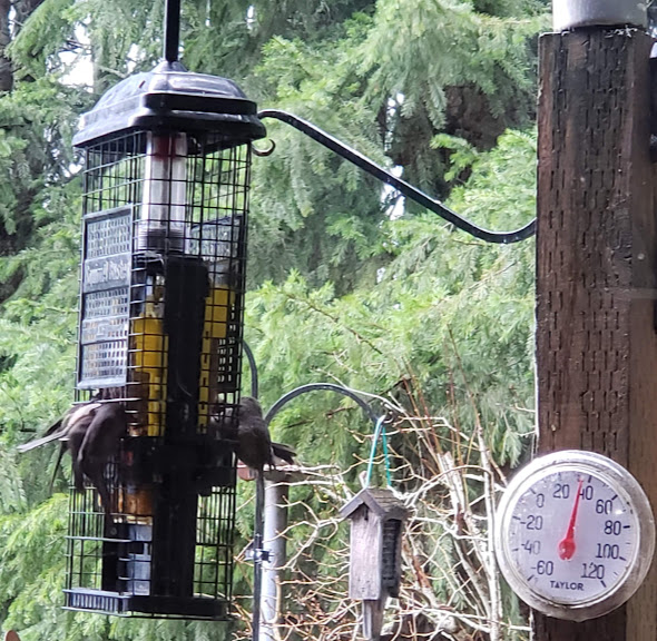 Da Keola photobomb made me LOL. I’m jealous of your goldfinches. I rarely see them here. We get sma’-kine snow this morning too. And I like your moon photo–it’s kinda artsy.