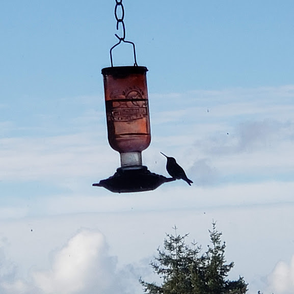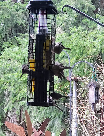 I especially like your “daily hummingbird acrobatics” photo. The hummer’s wings are just fascinating. I love watching a flock of bushtits–they always sound so cheerful.