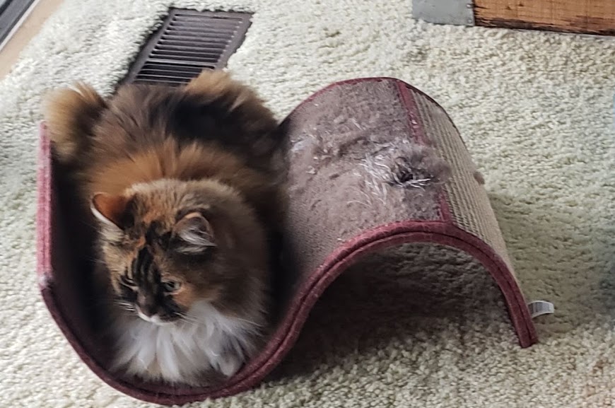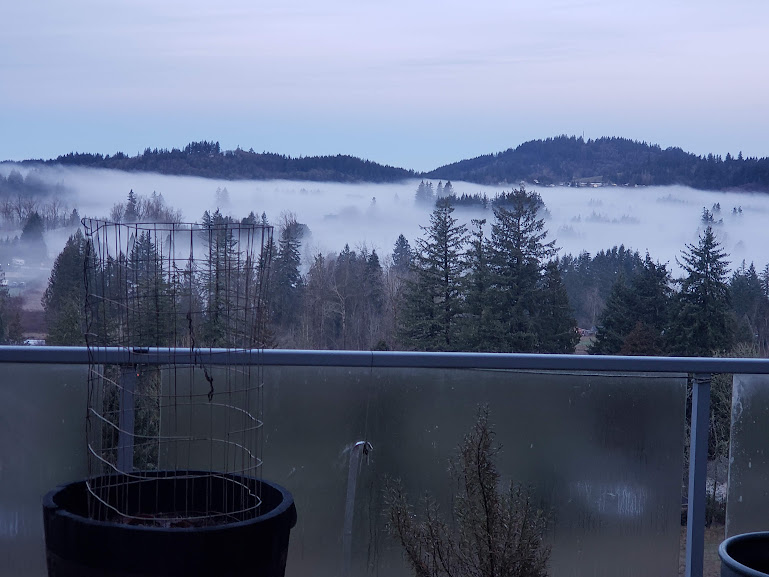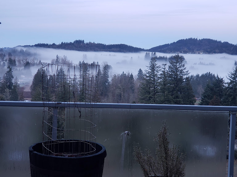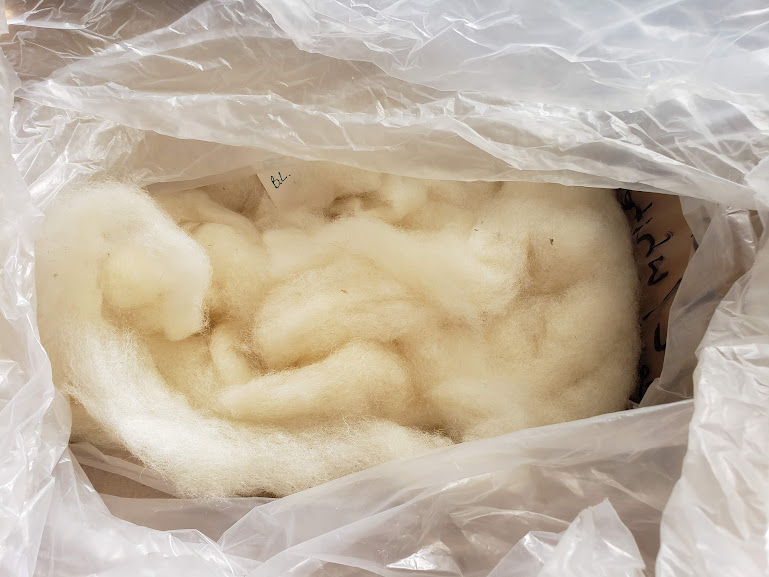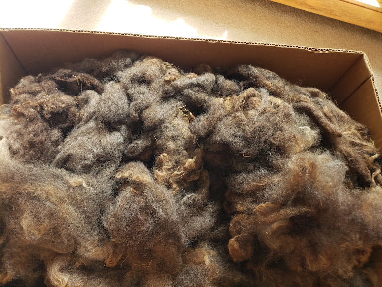 There’s still some snow on the ground on this cold, foggy, morning.Daily hummingbird on the foggy morning.I love seeing the fog over the valley!Today at his request, I went with Jenni over to Laura and Tom’s house to help organize and price all of her spinning and knitting stuff. The last time I was here, Laura was still alive. I was happy to help; it seemed so strange that Laura wasn’t here…but maybe, in some way, she was.This is a lovely washed fleece. Laura had labelled everything, which really made our job so much easier.Laura had some beautiful fibers. This is carded wool.And this wool that hasn’t been carded yet.
