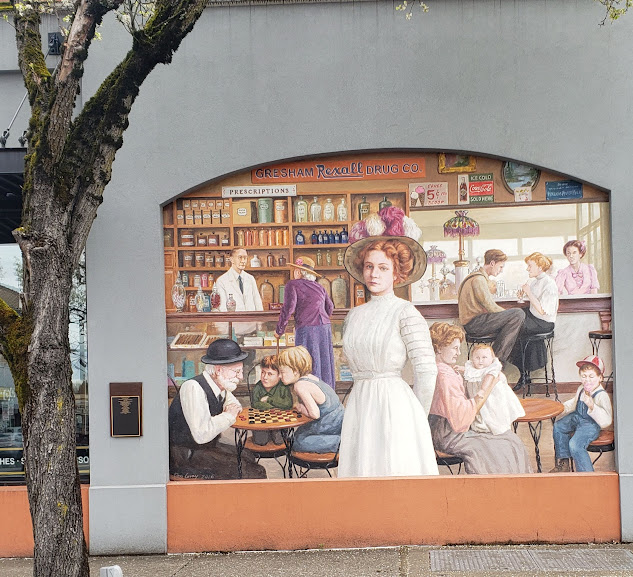 I love this cool mural on the side of Jazzy Bagels in Gresham. Their bagels are fantastic, too.