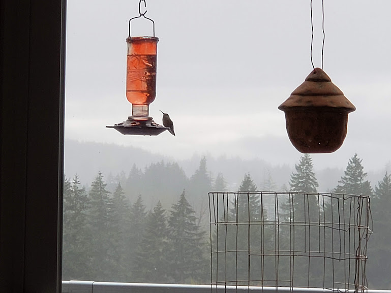 Daily hummingbird on rainy day.