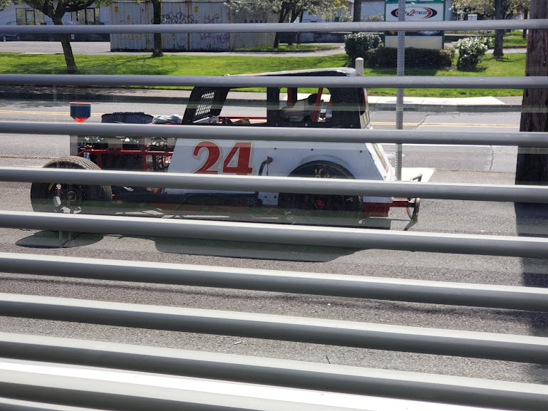 Cool dwarf hot rod outside my car’s repair shop…mechanics trying to figure out a coolant leak on my van.