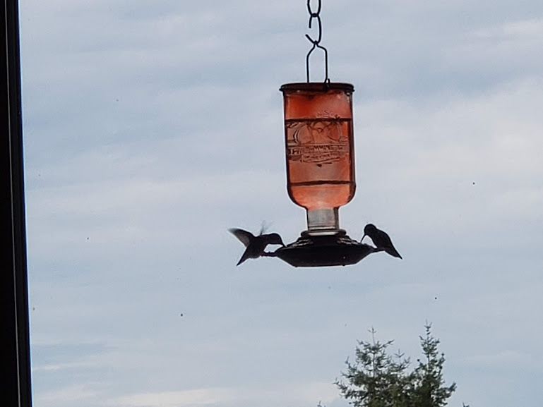 Mahaloz fo da pīpī pitchas! The last two weeks have been difficult, and I appreciate your thinking of me. I love all the picture of the two hummers not fighting and feeding together. And, of course, I always love kitty photos. Sending hugs to you.