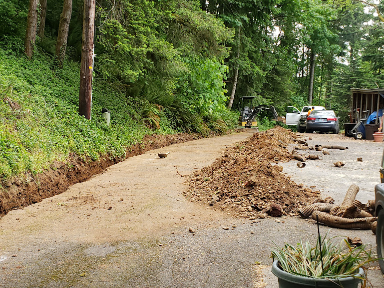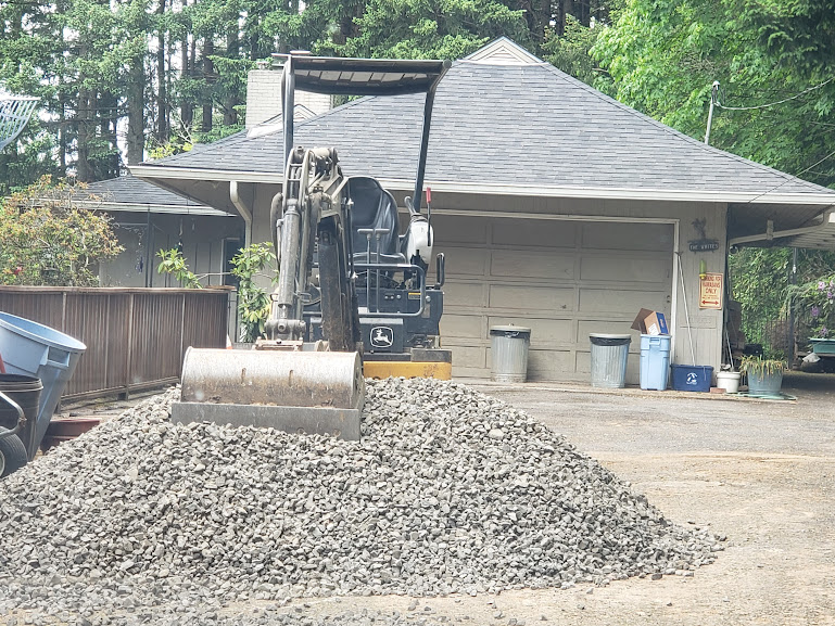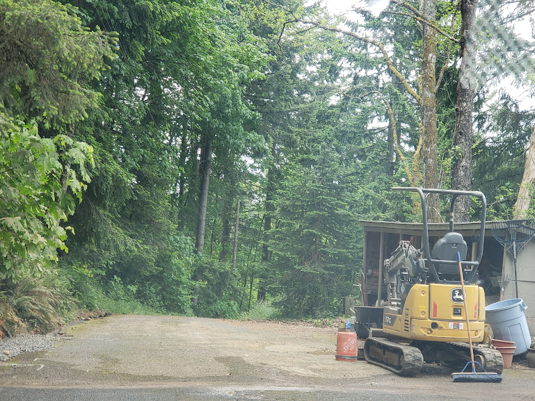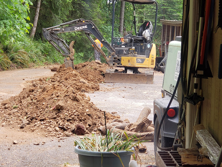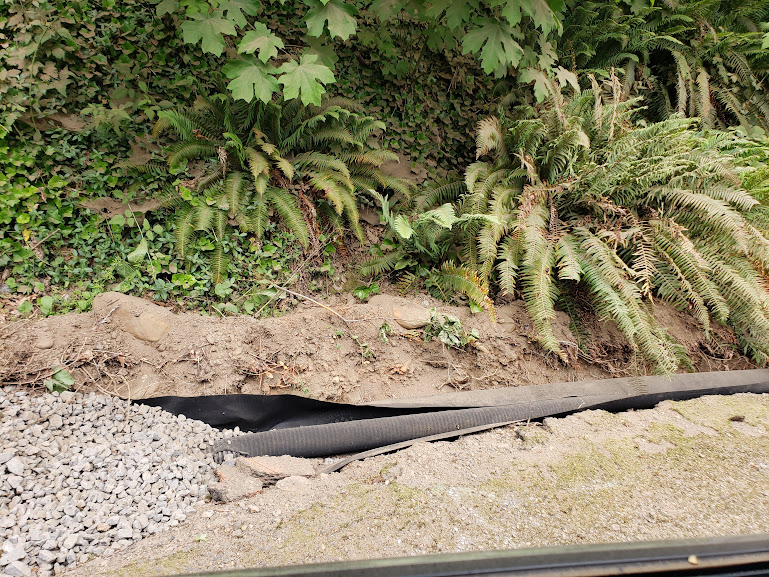 Remember in my last post how the railing was taken down so that the retaining wall could be filled with rock? Well, this is what it looks like without the railing. Scary! Instead of backing up here to turn around and go down the driveway, we turned to the front so that we wouldn’t go falling backwards over the hill!