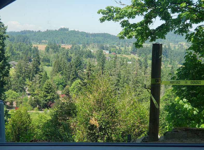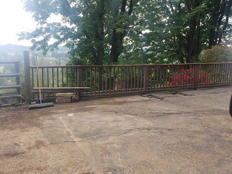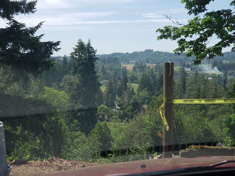 Remember in my last post how the railing was taken down so that the retaining wall could be filled with rock? Well, this is what it looks like without the railing. Scary! Instead of backing up here to turn around and go down the driveway, we turned to the front so that we wouldn’t go falling backwards over the hill!