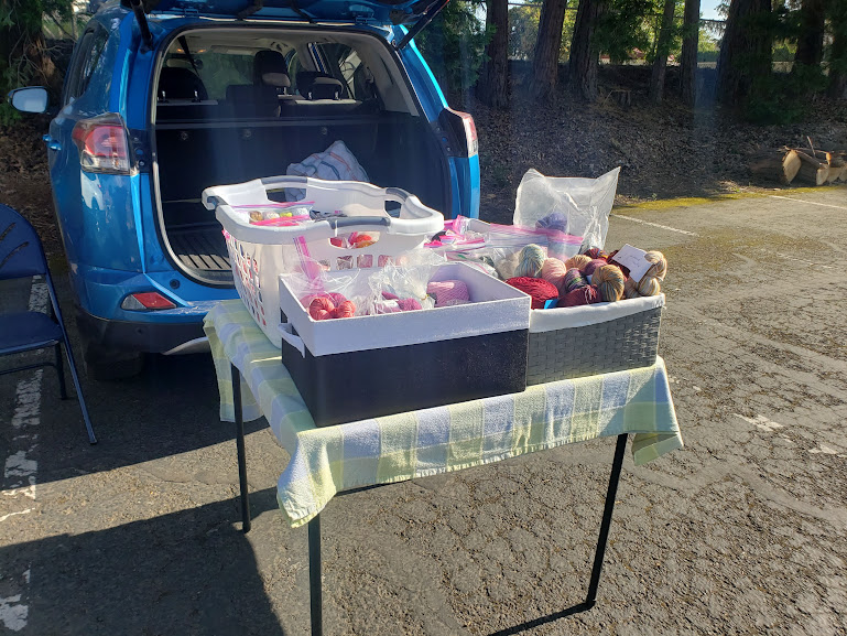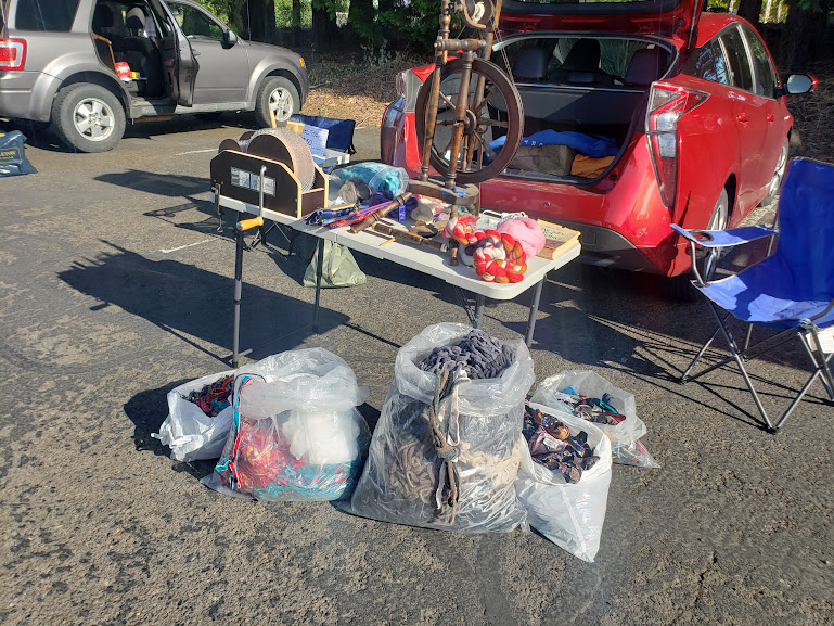 This evening was my spinning guild’s annual parking lot destash sale. I had a whole lot of fiber to detash and made up my mind not to buy anything.