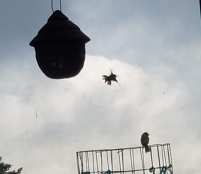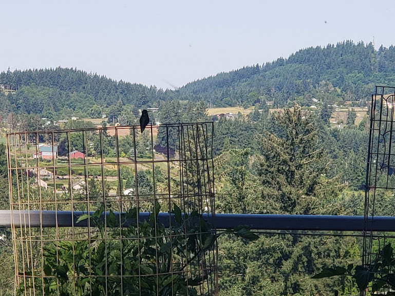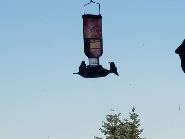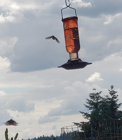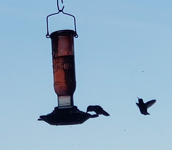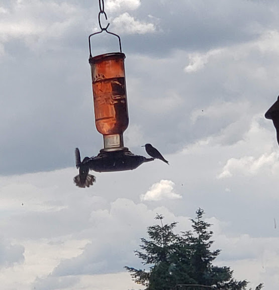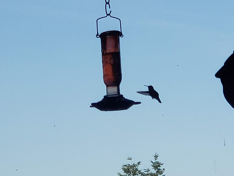 Daily hummingbird.Papa Goldfinch on our front gate.
