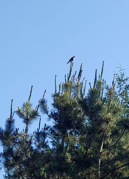 I think this was a Robin ‘way up in the tree at our first food delivery.