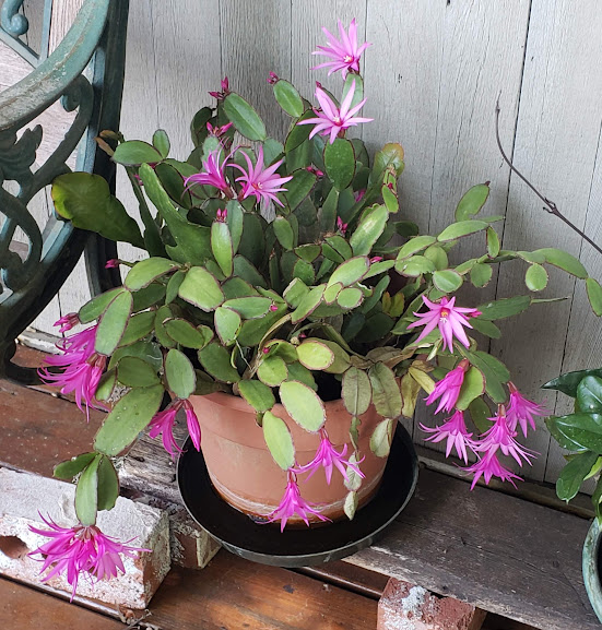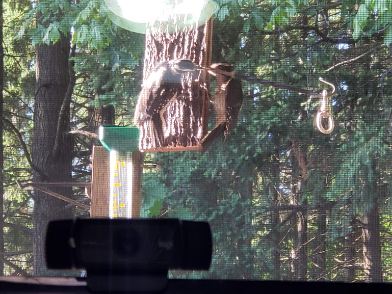 This cactus is blooming and I’ve never seen flowers on it like this before. So pretty, yah?Got some spinning done today.Blurry photo through the screen… Papa Hairy Woodpecker feeding his baby.