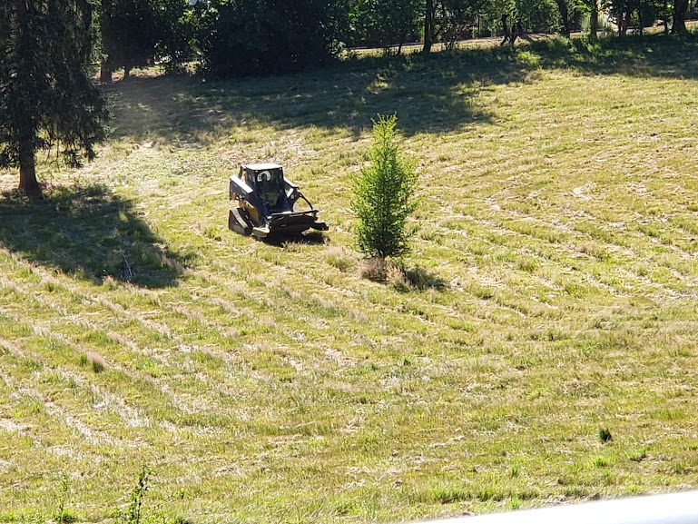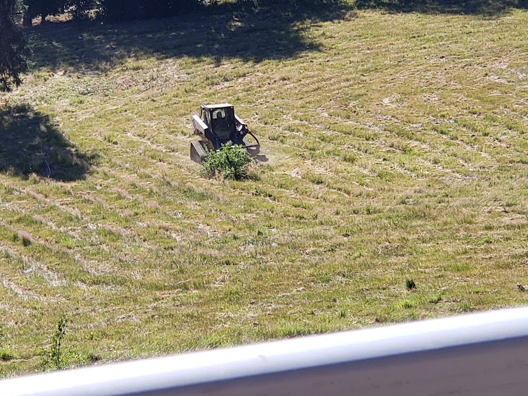 Today, Jake came back with his brush hog and did a great job cutting down some scrub bushes and trees for us.