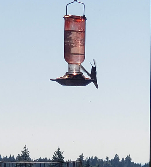 The hummingbird looks like he’s directing a choir. Happy birthday Myrna!