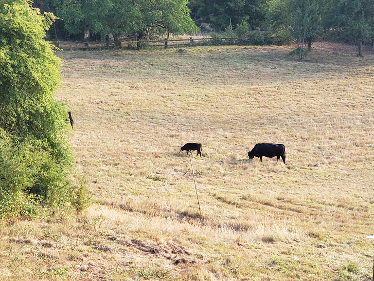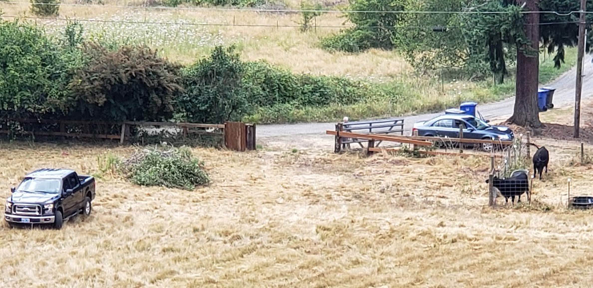 Andrew was over helping Nolemana do some cleanup; he drove into the pasture to put the trimmings into the burn pile, so the cows had to be locked up while he unloaded. The girls were not happy.
