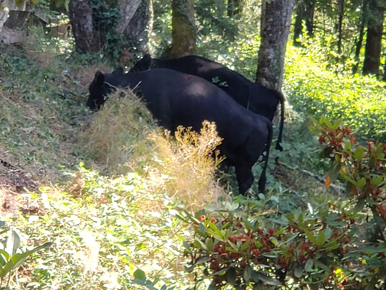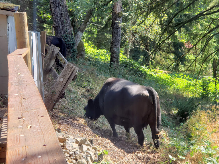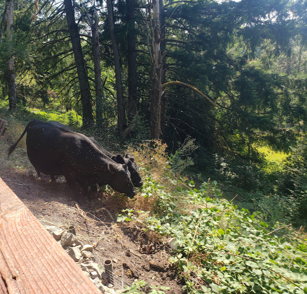 I wasn’t sure if Bessie would have trouble getting back up the incline, but she didn’t. I love horses, and I’ve loved having them here for the past 25+ years, and I miss them. But I must admit that I’m really enjoying having the cows here. I’m sure a lot of that affection for them is rubbing off on me from AFK!