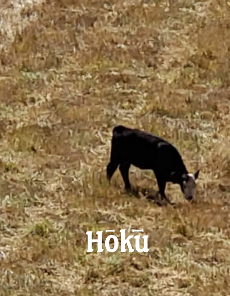 We also thought the name Hōkū would be a cool name for the calf. It means “star”. The names had to be easy for mainland folks to pronounce and remember, and we thought that these two names would work.