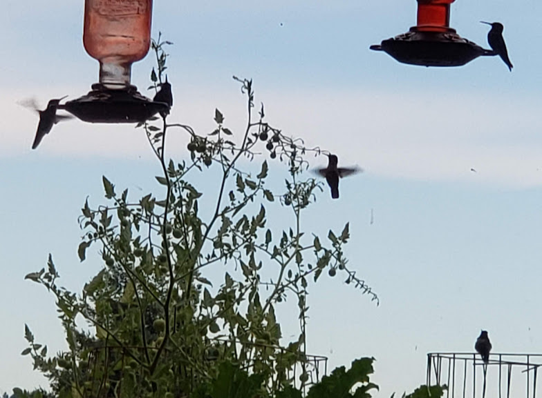 Then the magic happened!!!! Four daily hummingbirds!! This has never happened before!