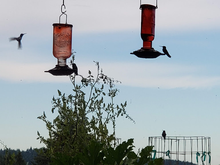 Then the magic happened!!!! Four daily hummingbirds!! This has never happened before!