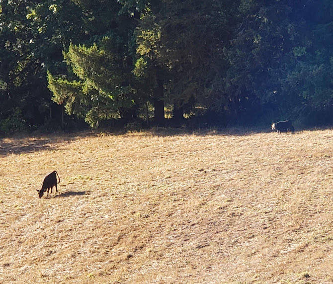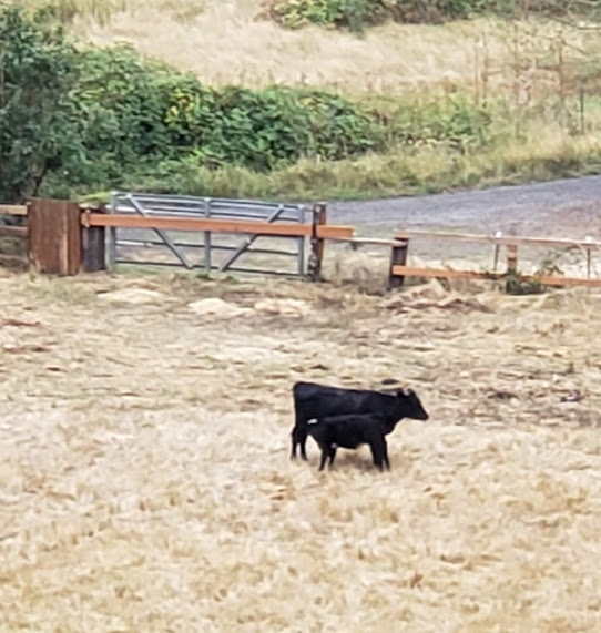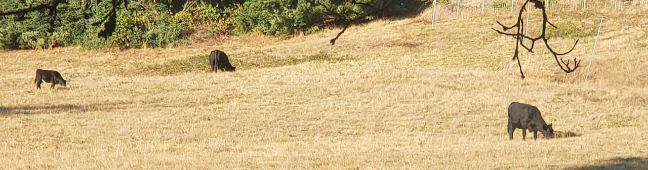 Daily pīpī…Lani Moo is scratching her back under the apple tree.