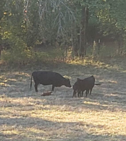 I’m always so happy when I can see the quail; I hope they stay through the winter. I know some people called it FIrethorn instead of Pyracantha, but I like Pyracantha better. Yes, the calf is doing well… he’s so stinkin’ cute!!