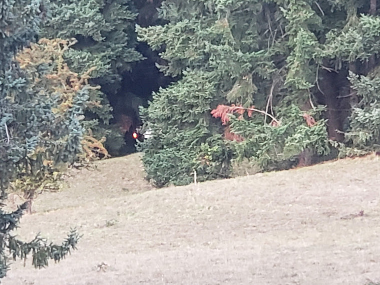Sarah stayed with the pickup up in the forest for a bit and Jake walked across the pasture to the brush and then Sarah drove the pickup back down again. Jake has a construction company and works hard in all kinds of dirty machinery during the days; we were grateful that he’d come over from work, tired and in work clothes, to look for the calf in places where we couldn’t get to. Bessie had gone back up into the brush directly up from the gate, and we all saw her go into the brush; at that point, we knew that was where she’d stashed her baby.