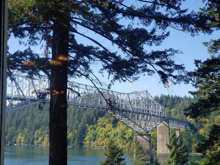 Today we took a field trip to Hood River and stopped in Cascade Locks for lunch. This is the bridge from there to the Washington side of the Columbia River. Looking makai.