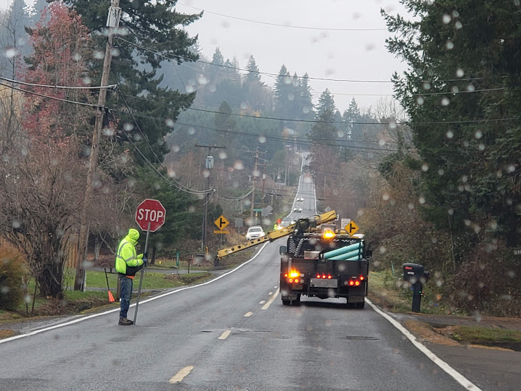 When I first saw that set up, I couldn’t figure out why they’d go over the house…but then figured out that since the ground was so wet they couldn’t get the pumper da kine over there. I asked the guys at the gym about it, and they confirmed what you and Michelle said.