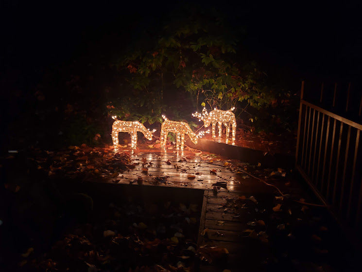 We found our Christmas deer; Nolemana put them outside the front door.