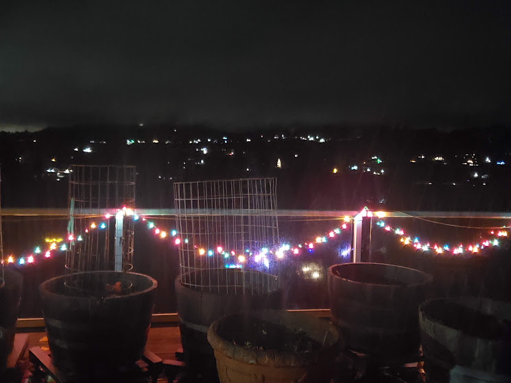 Lights twinkling over the valley; can you see the Christmas tree straight ahead? It’s so hard to photograph!