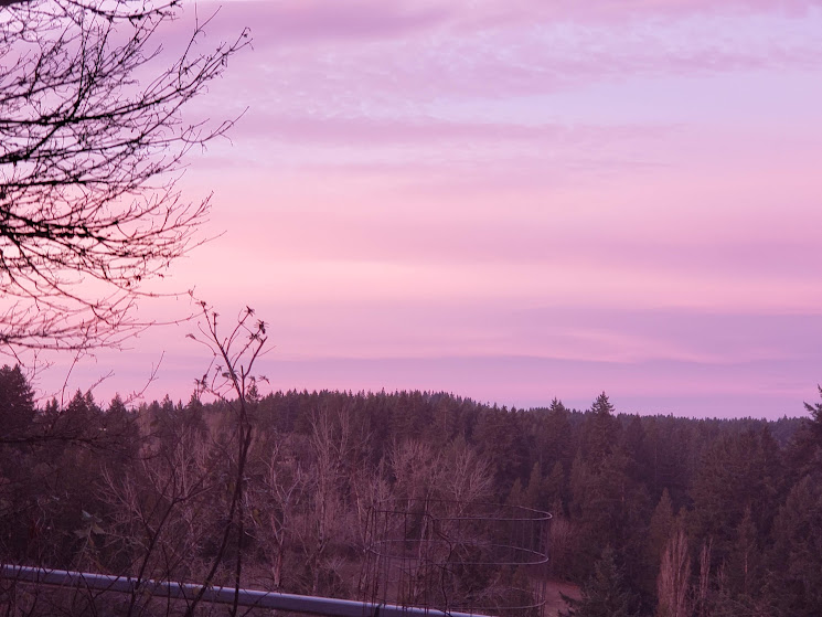 Wow, laulau, your photos of Mt. Hood and sunrise on 12/13 are just stunning. And your friend sure knows how to decorate! That bumper sticker is hilarious. And on a minivan too! Glad da pīpī ste back weah dey sappose to be.