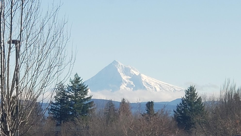 Wow, laulau, your photos of Mt. Hood and sunrise on 12/13 are just stunning. And your friend sure knows how to decorate! That bumper sticker is hilarious. And on a minivan too! Glad da pīpī ste back weah dey sappose to be.