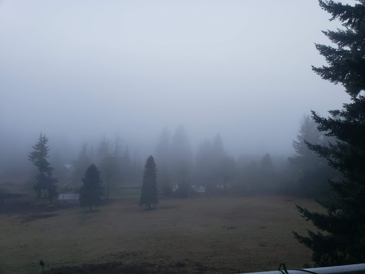 By the time I went to bed last night the fog was so thick that I couldn’t see any lights across the valley or fireworks. This morning I still couldn’t see across the valley.