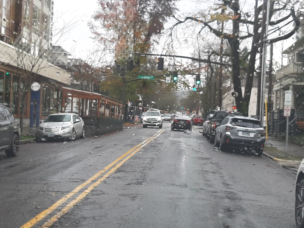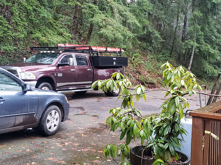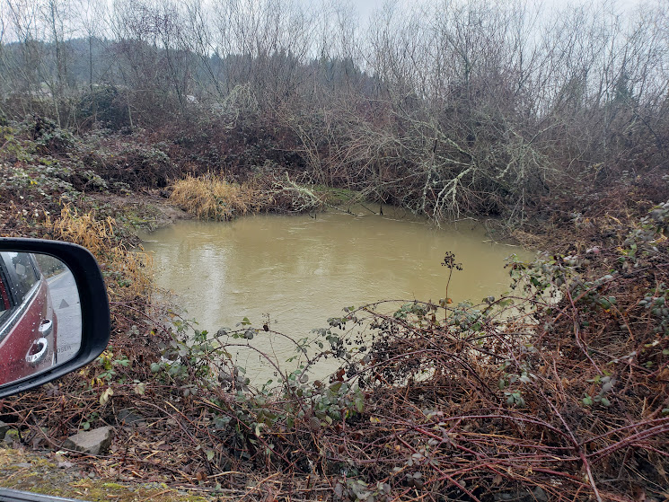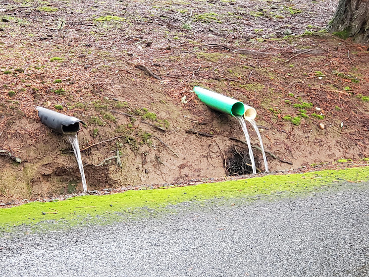 So much water draining from our neighbors’ yard. Coming down from the hillside above both of us.