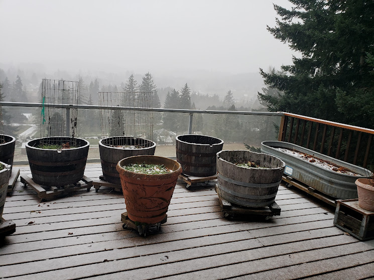 My friend wasn’t nearly as lucky as we were. PGE came right out and turned off the power to avoid a fire if and when the power came back on again. The tree is still on her house, but contractors came and shored up the inside wall and put a tarp on the roof.