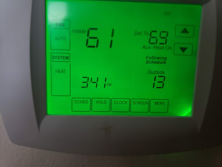 Our heat finally came back on! Thank you, PGE crew!!