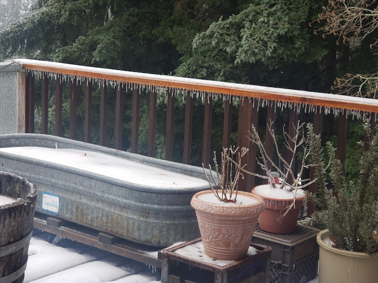 And there’s Kiko. They’re probably up here asking me to call Jake because they’re hungry again. I did. He came by in just an hour. I’m glad his pickup can deal with the ice.