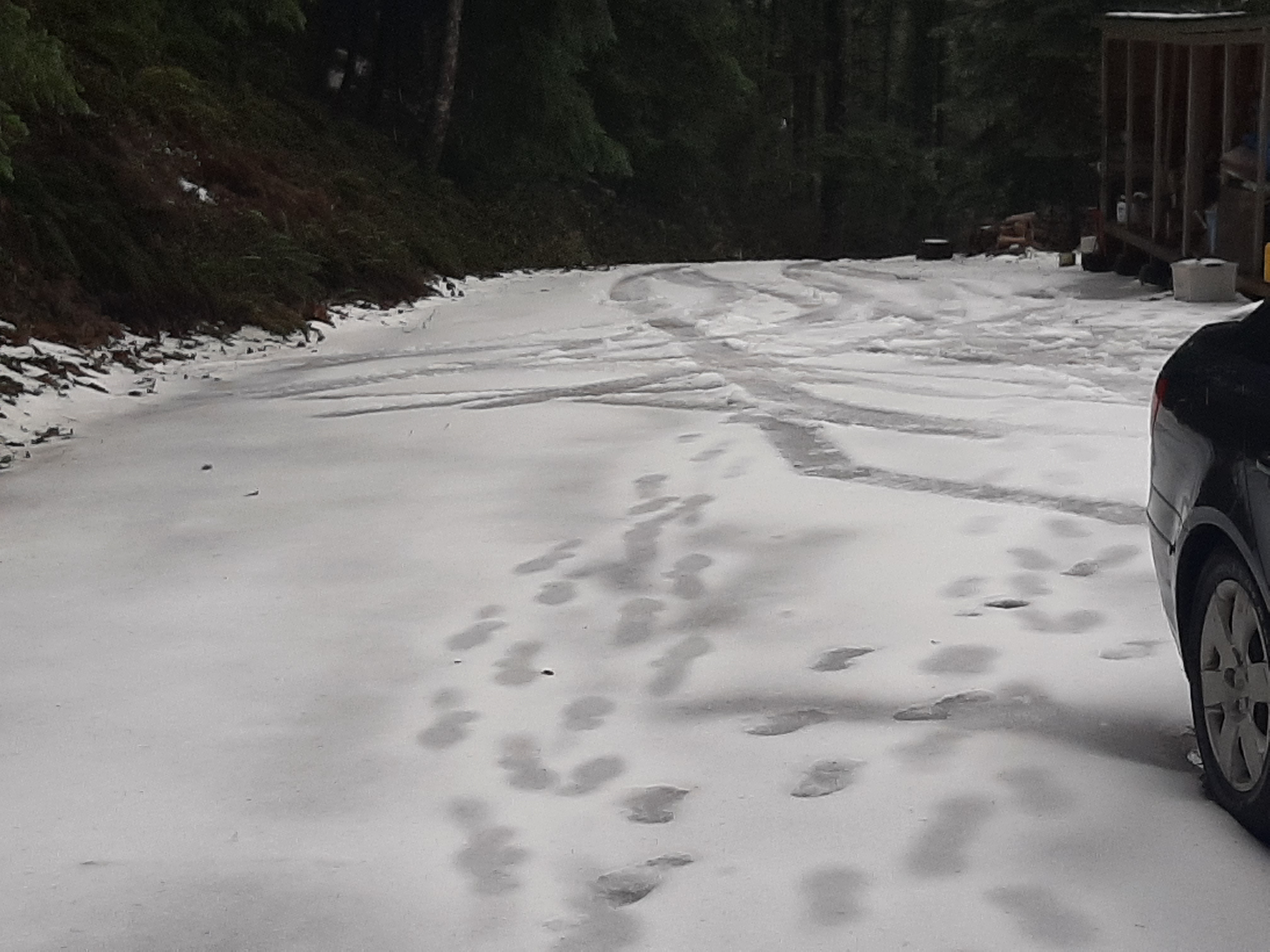 The tire tracks are from Jake’s mighty pickup when he got up here the other day.