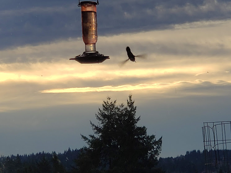 Your first dive-bombing hummer photo made me say “Oh, wow!” out loud, so I clearly like it too. I’m so PSYCHED that you also look at the Panama Fruit Feeder cam! I love that feed. The chachalacas are so clumsy and entertaining. I love the blue gray tanagers best, I think, because they’re soooo pretty. And mahaloz, as always, for da pīpī pitchas, especially da one of Bessie and Kiko.