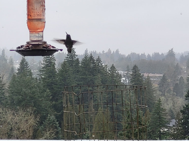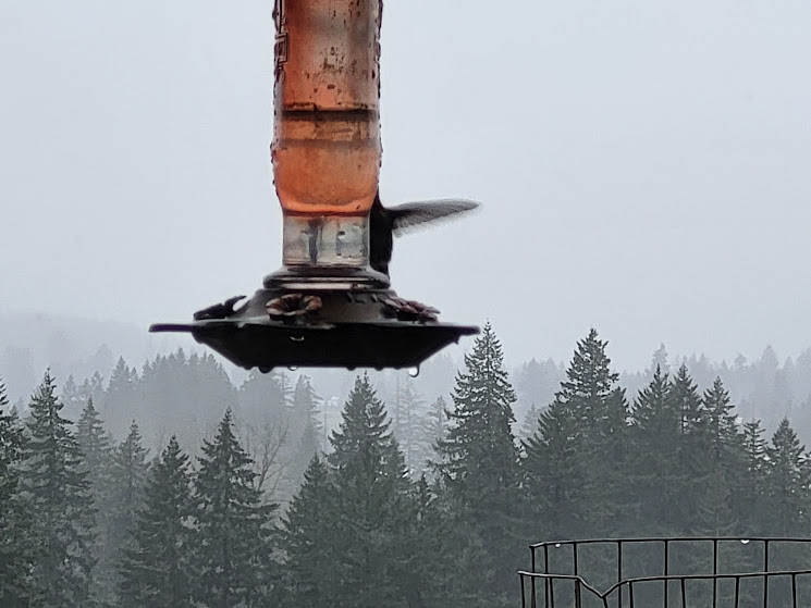 These next few photos… I could see the hummingbird’s head through the clear part of the feeder…it was fascinating, but the photos are pretty blurry.