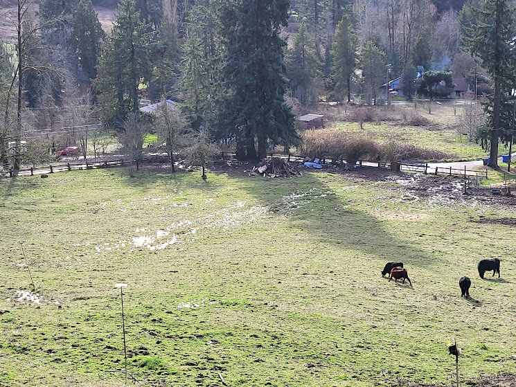 Holy smoke, the water running down our pasture! We’ve had so much rain lately (good thing).
